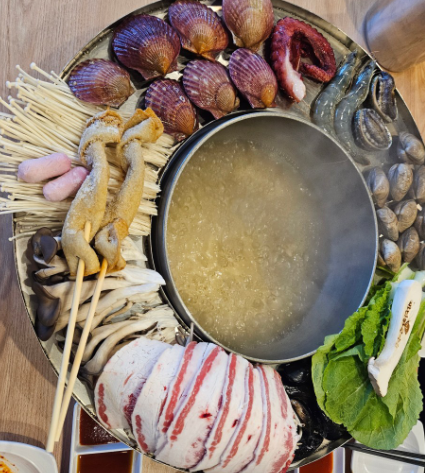 "꽃 쟁반 칼국수"의 매력은 손님들에게 한 상에서 다채로운 맛을 제공한다는 데에 있습니다. 우삼겹과 다양한 채소를 함께 육수에 넣어 깊고 진한 맛을 느낄 수 있는 '우삼겹 샤부샤부', 제철 재료와 신선한 해산물로 만든 '맑은 해물탕', 그리고 추위를 날려버릴 듯한 뜨끈한 국물에 칼국수 면을 넣어 든든하게 맛볼 수 있는 메뉴가 준비되어 있습니다.