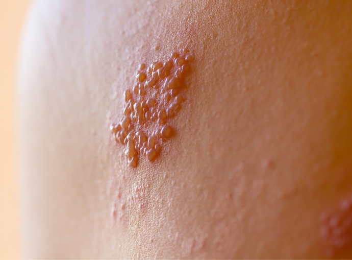 가장 전형적인 대상포진 초기 증상 중 하나로, 피부에 작은 수포가 생겨납니다. 처음에는 작지만 시간이 지나면 크게 번질 수 있습니다. 빨리 병원을 찾아 약을 처방받거나 입원하여 치료를 시작해야 합니다.
