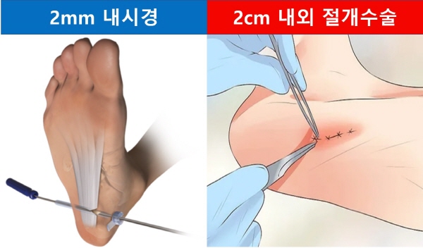 만약 비수술적 치료가 효과를 나타내지 않는 경우, 수술적인 접근이 고려됩니다. 이러한 수술 중 하나는 족저근막을 늘려주는 것이며, 최근에는 관절경을 이용하여 족저근막 절개술을 시행하는 경우도 있습니다. 이러한 수술적 치료는 환자의 상태와 전문의의 의견을 기반으로 결정됩니다.