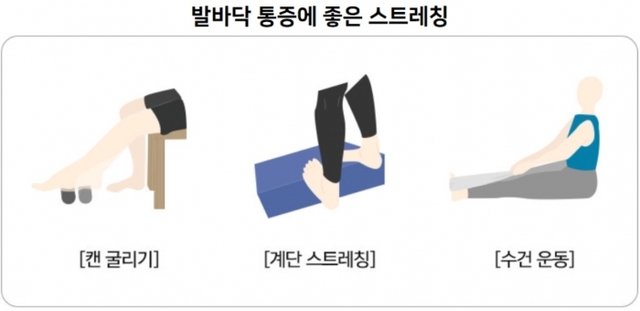 - 스트레칭: 발바닥 근막을 늘리고 유연성을 증가시키기 위한 스트레칭 운동을 시행합니다.