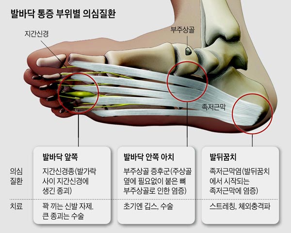 보통 발바닥이 아프면 족저근막염이라고 생각하지만 아닐 수 있기 때문입니다.