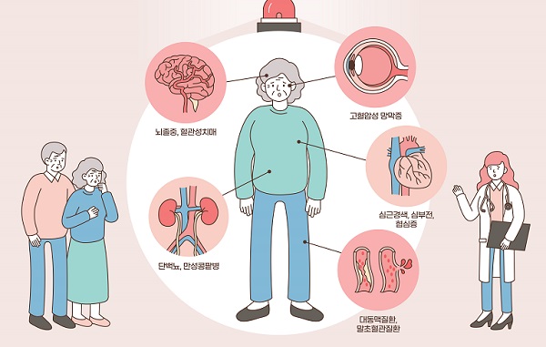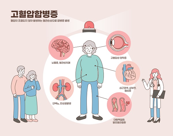 고혈압은 단순히 뇌뿐만 아니라 신장, 심장 등 전신의 다양한 장기에도 영향을 미치므로, 과도한 고혈압을 낮추는 것이 중요합니다.