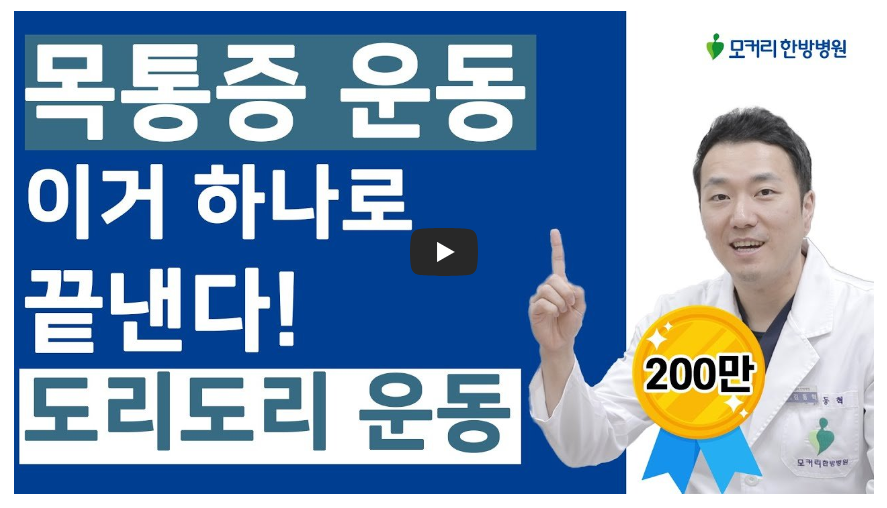 추가적으로 목디스크 하면 아주 유명한 영상 소개해드릴게요. 조회수 20만 넘은 자생한방병원에서 올린 영상입니다.