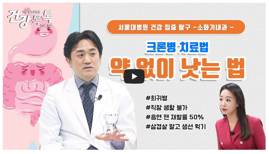 아래 제가 정리한 정보 및 추천 영상을 시청하시면 크론병 관리에 매우 도움이 될 것입니다!