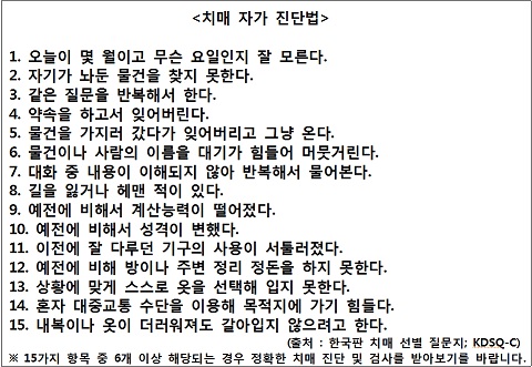 이제는 치매인지 아닌지 한번 치매 자가진단 테스트를 해보시기 바랍니다.
